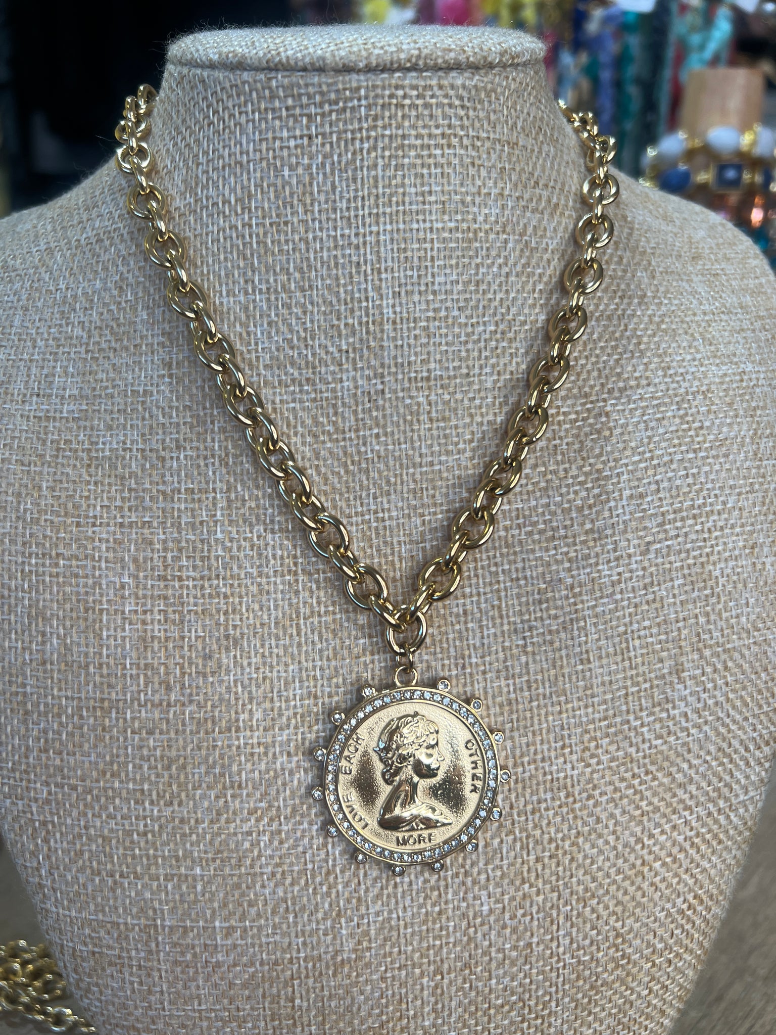 • gold water resistant chain with gold coin