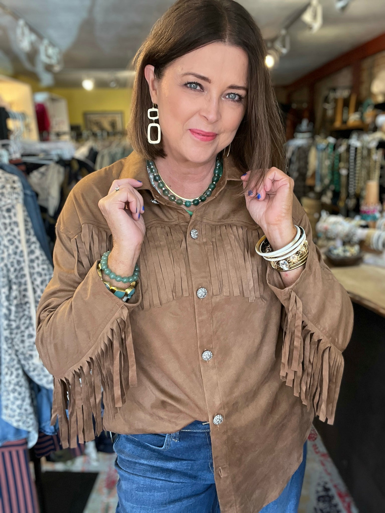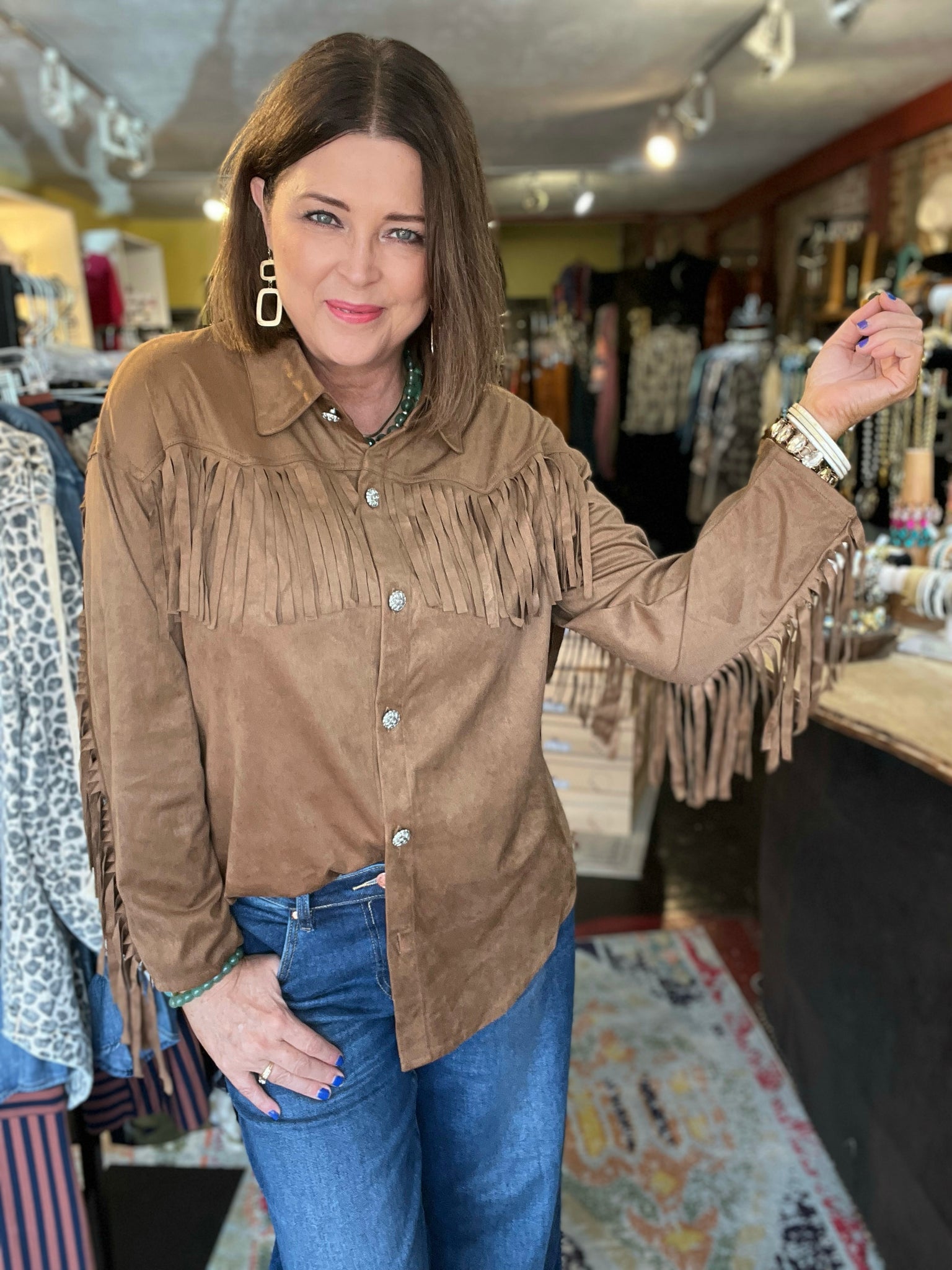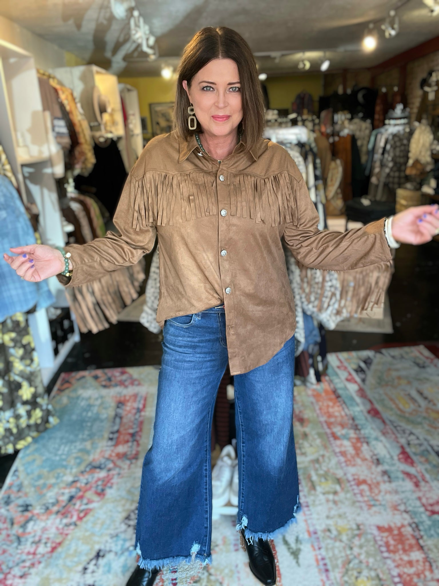 • faux suede brown western style shirt