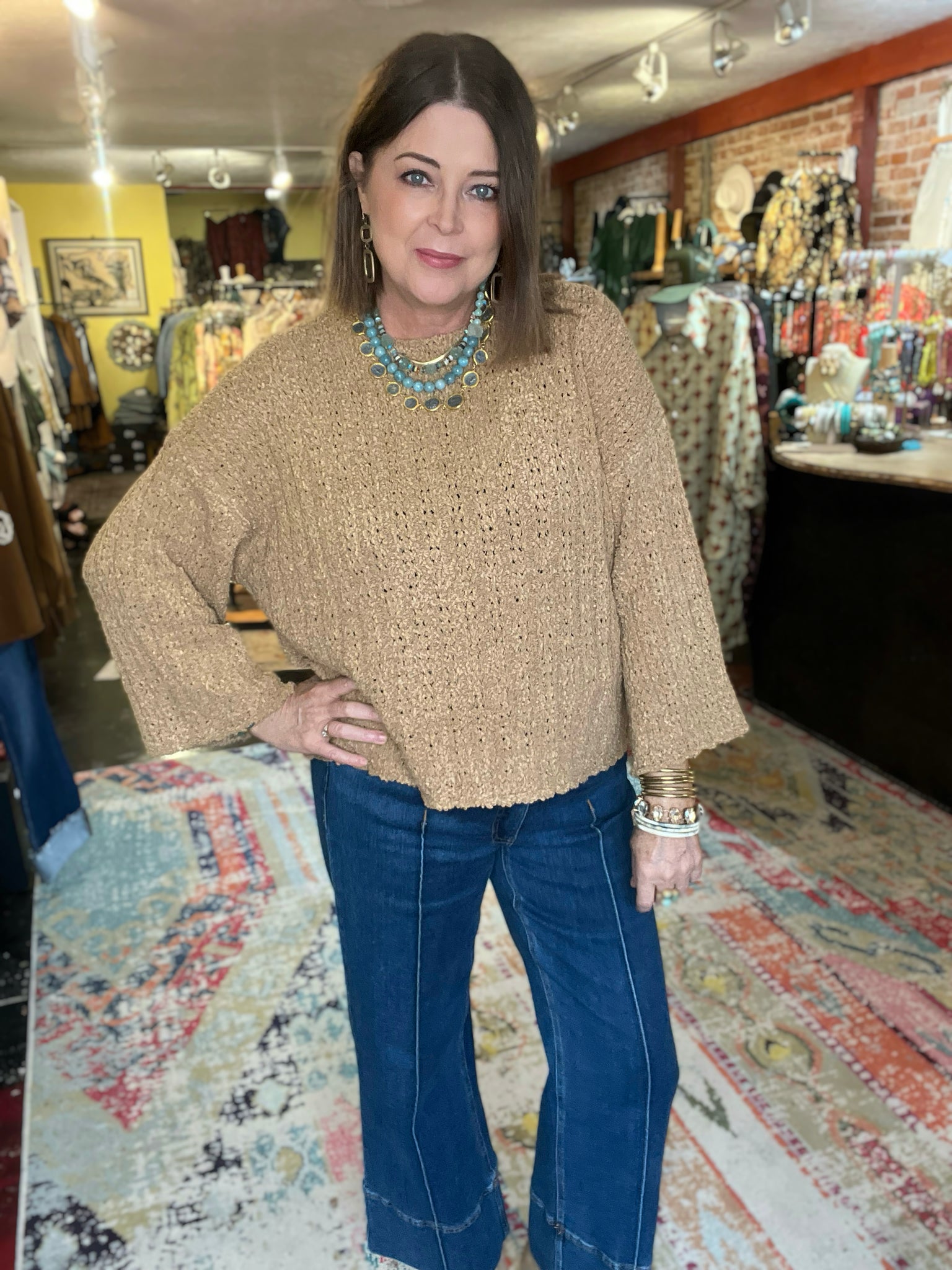 • boxy fit, textured, dressy sweater