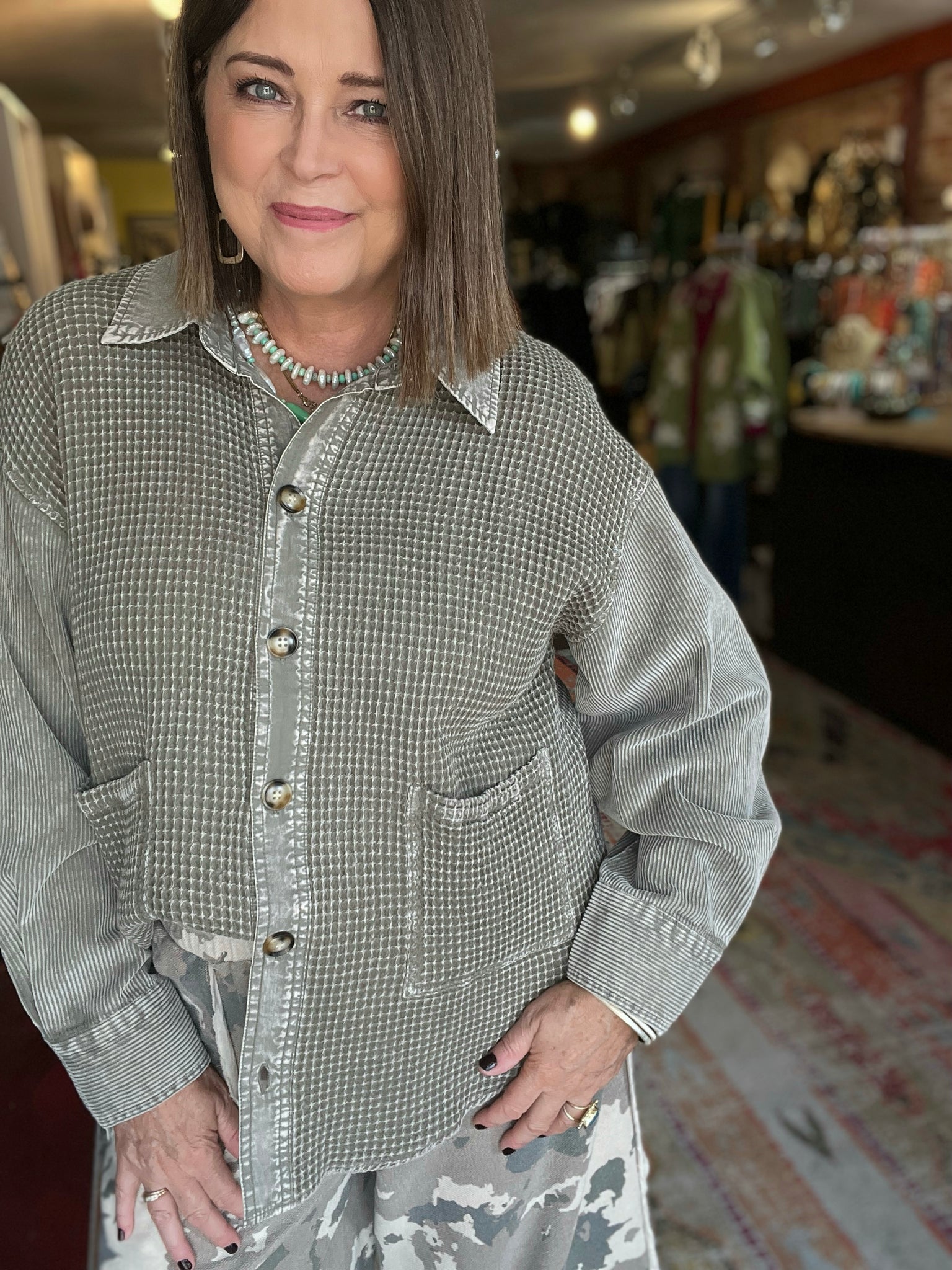 • thermal fabric shacket