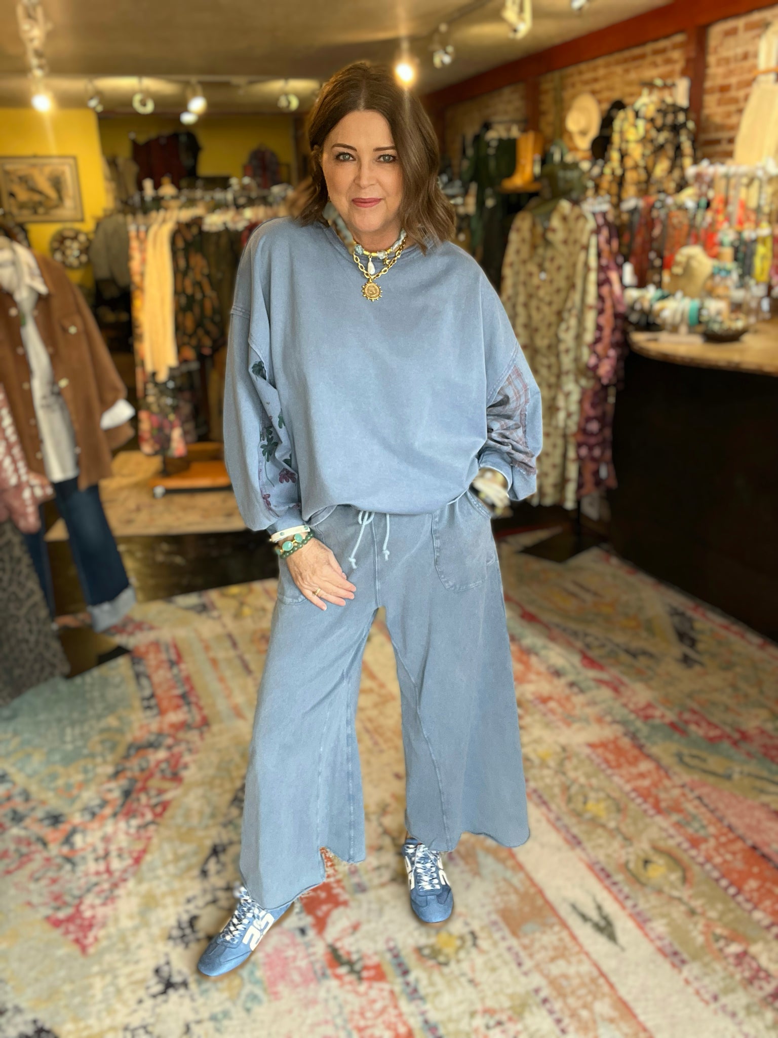 • Kelly is wearing a medium