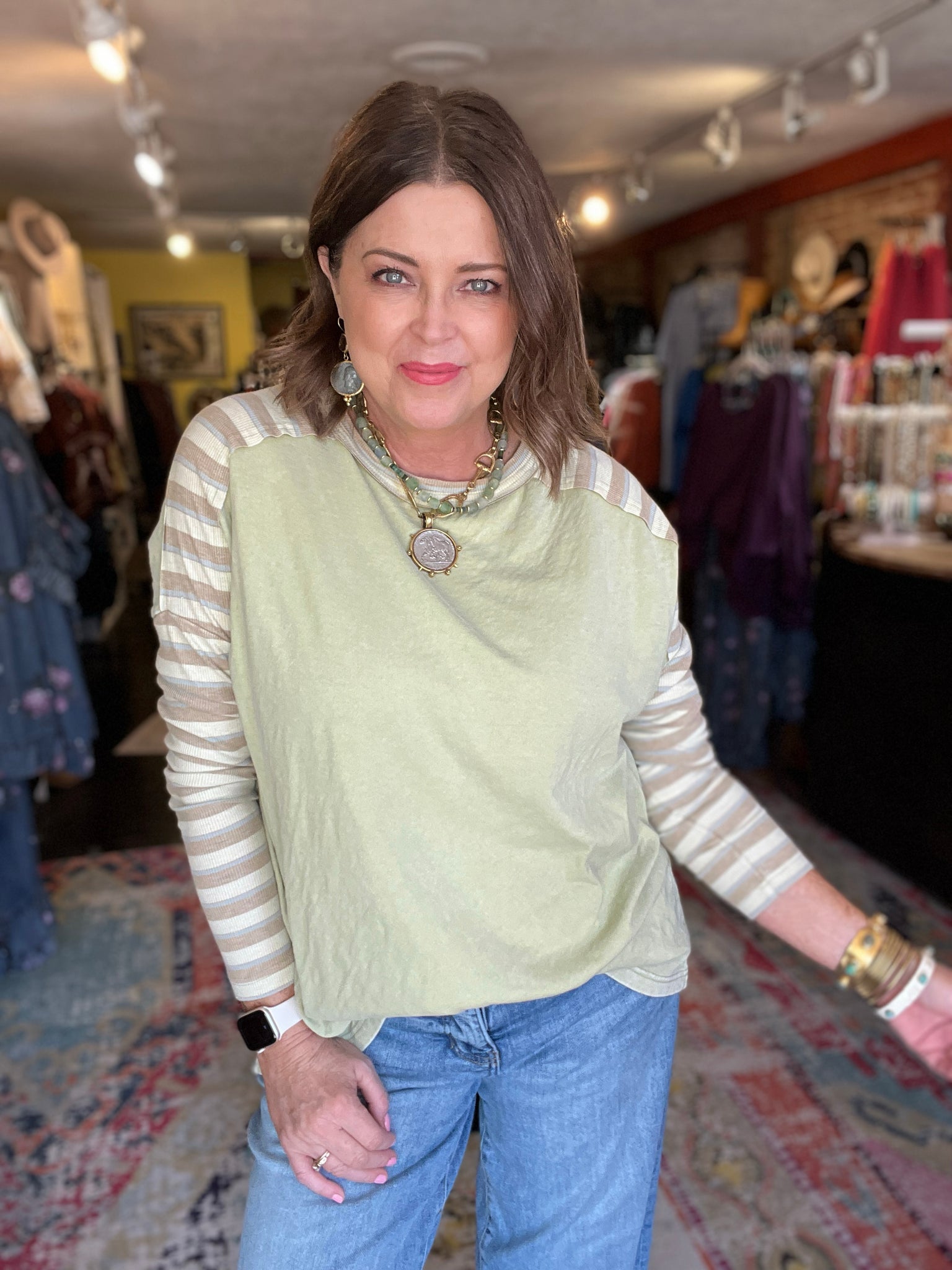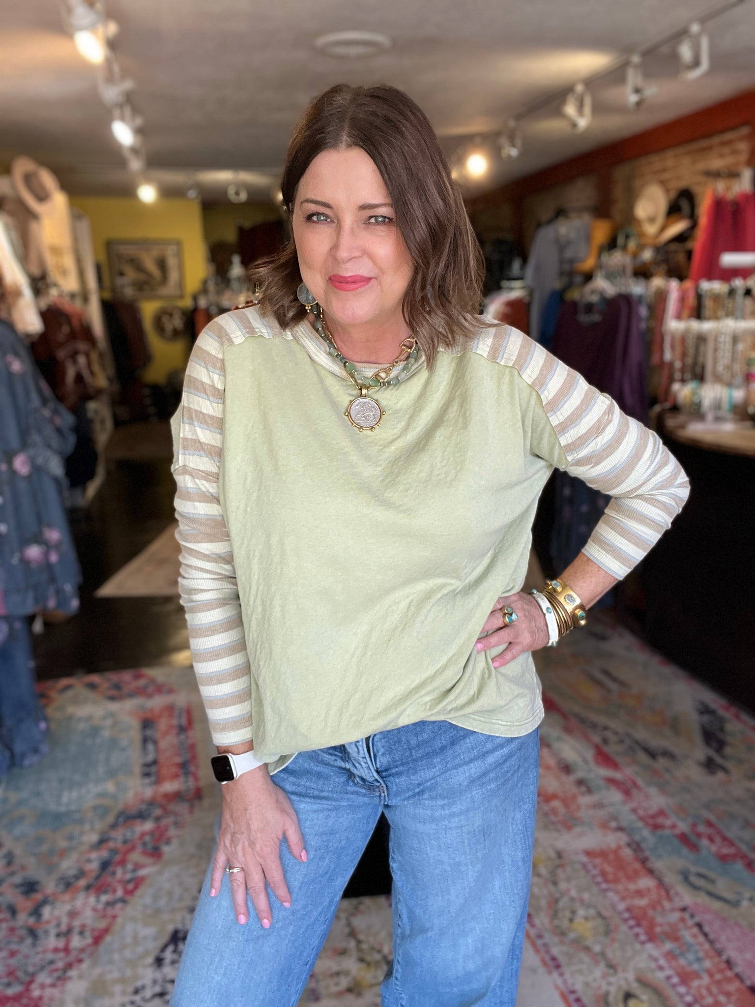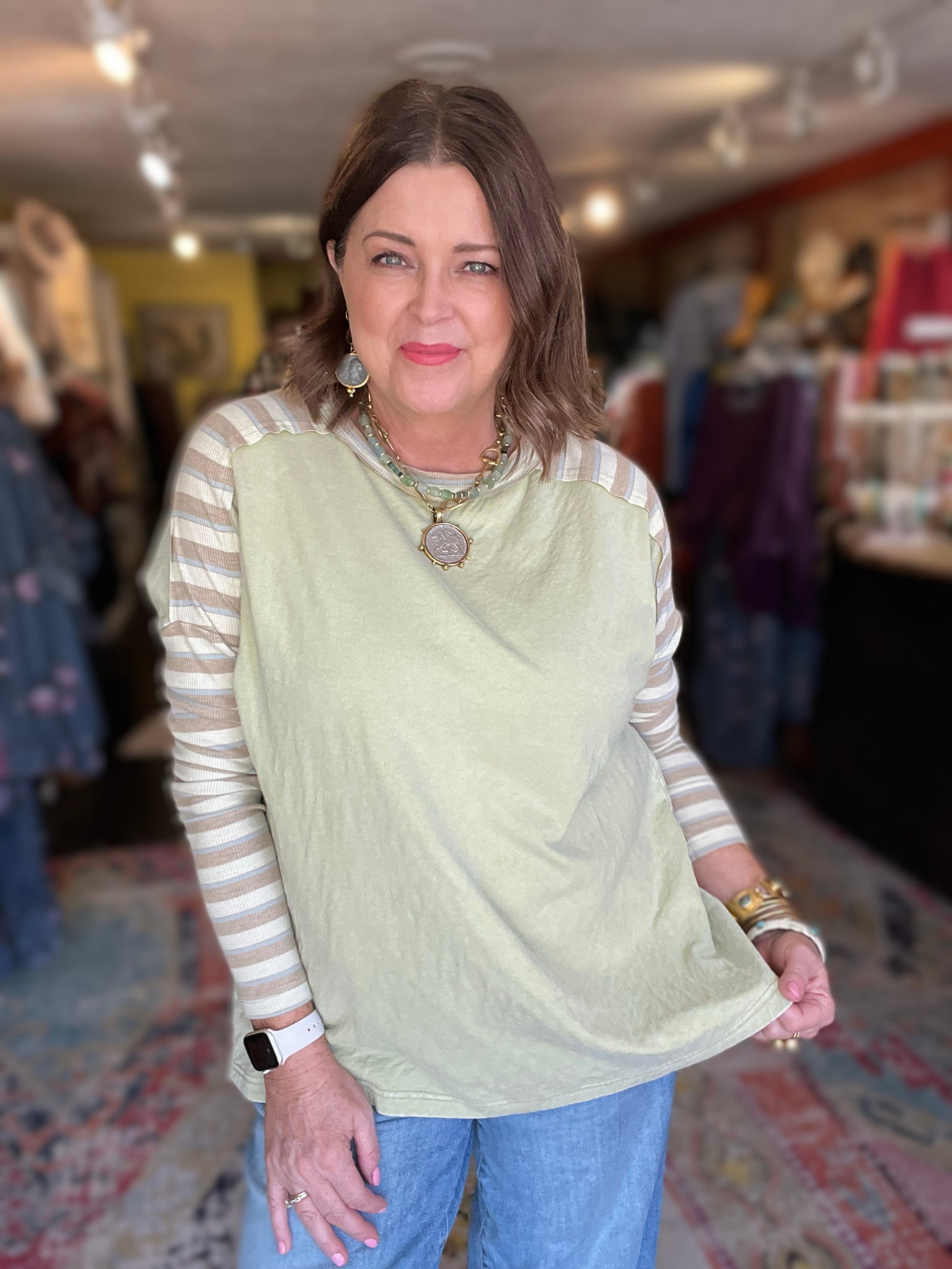 • contrasting striped ribbed sleeves