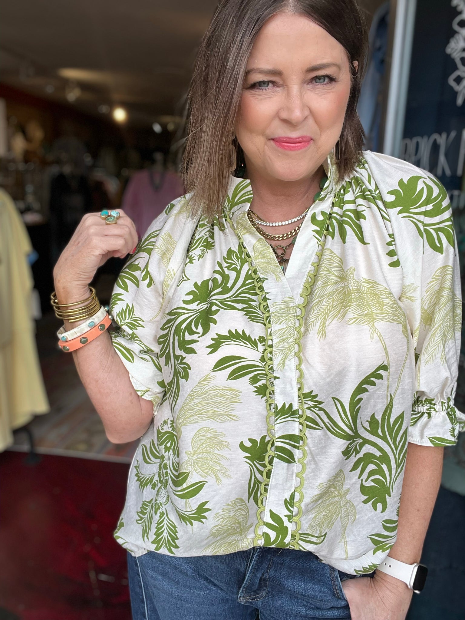 • Kelly is wearing a medium
