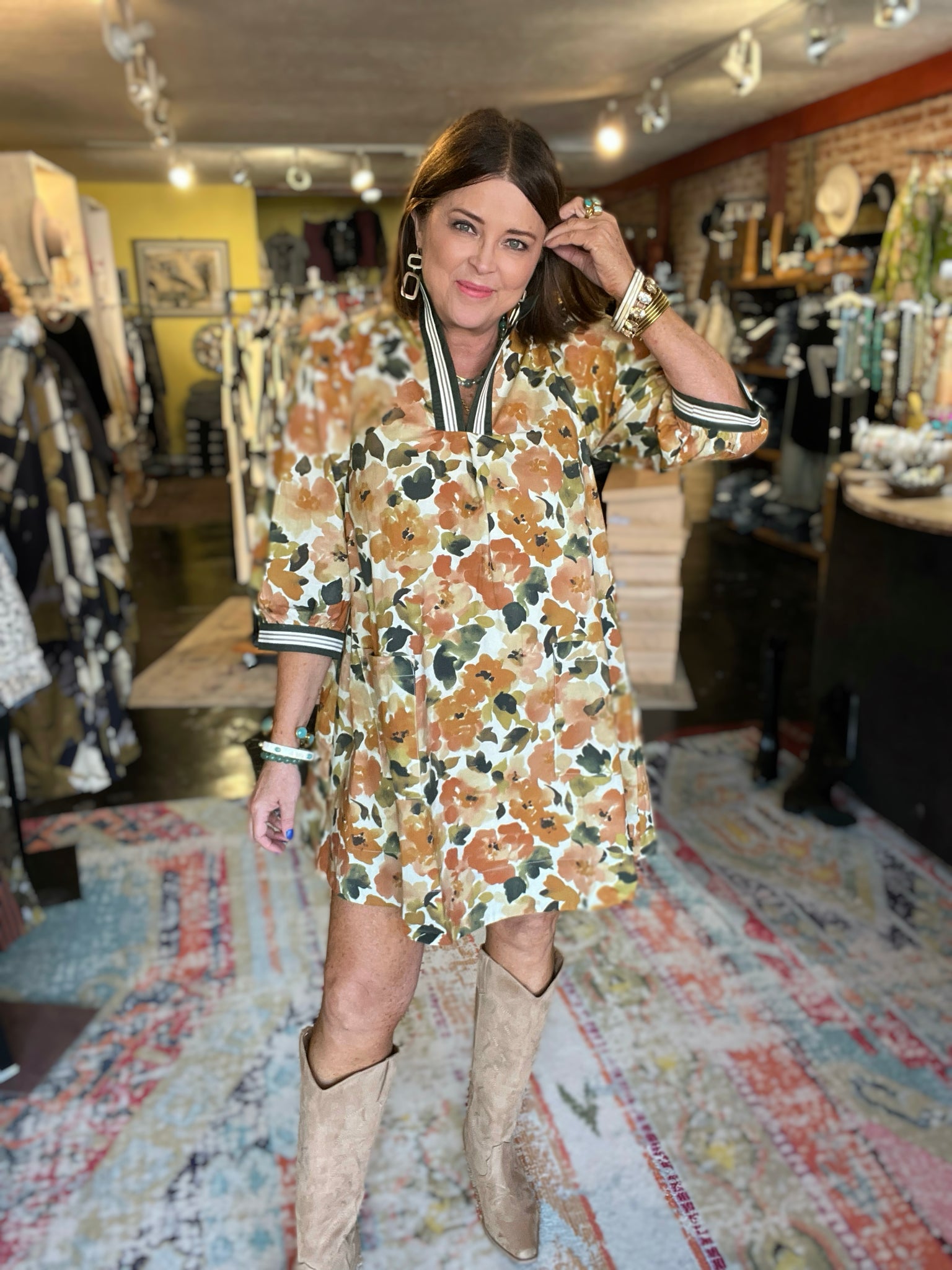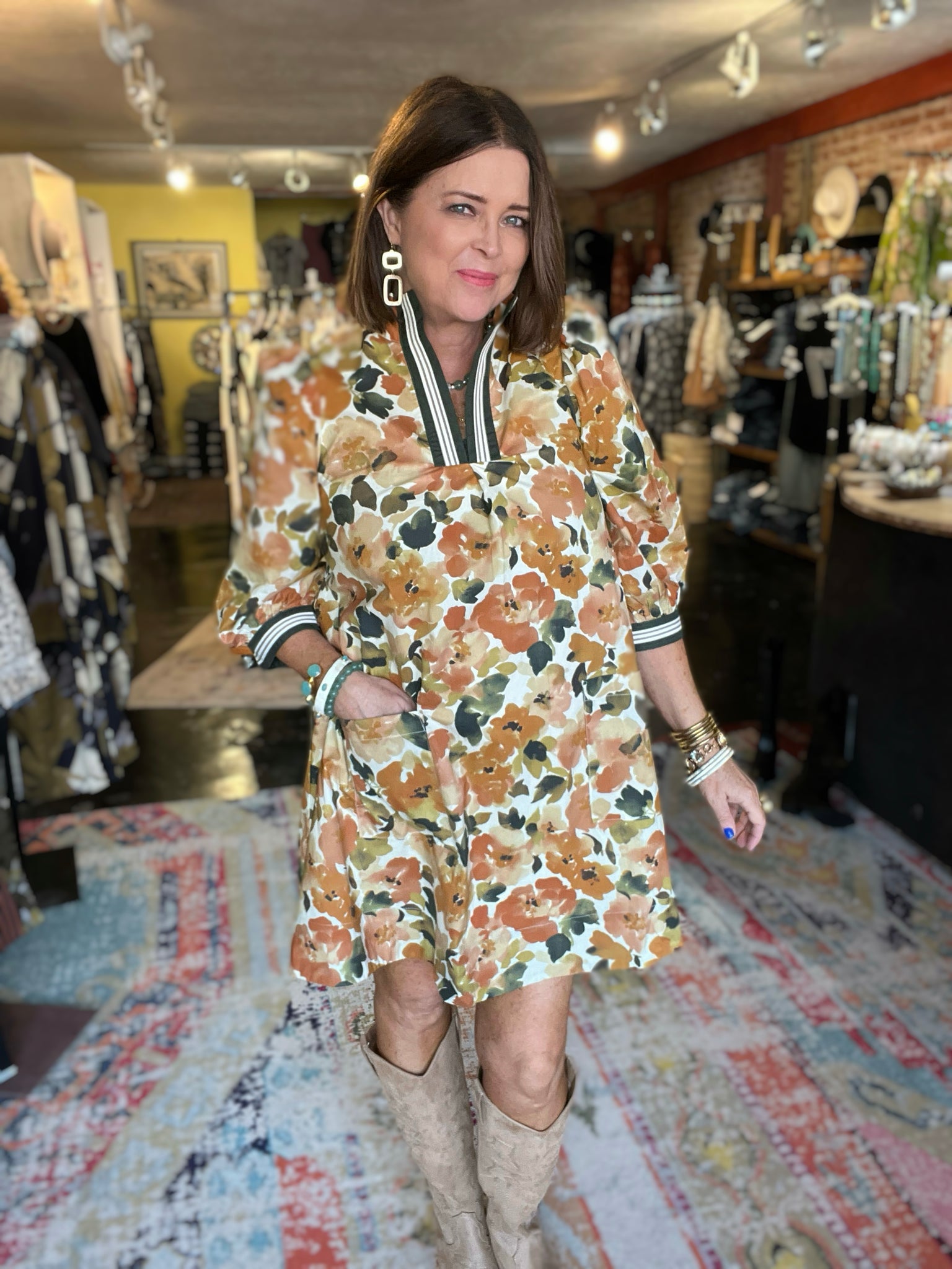• Autumn colored florals with athletic stripes
